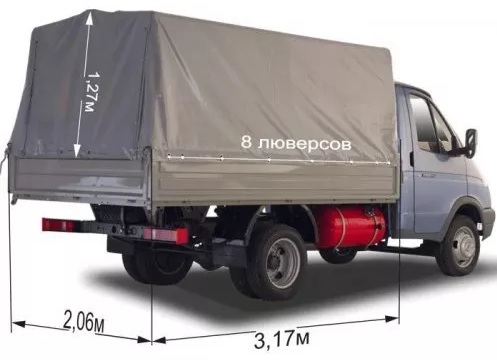 Краткое описание «Тент автомобильный на ГАЗ 3302 (на ГАЗель) под заказ, Россия»