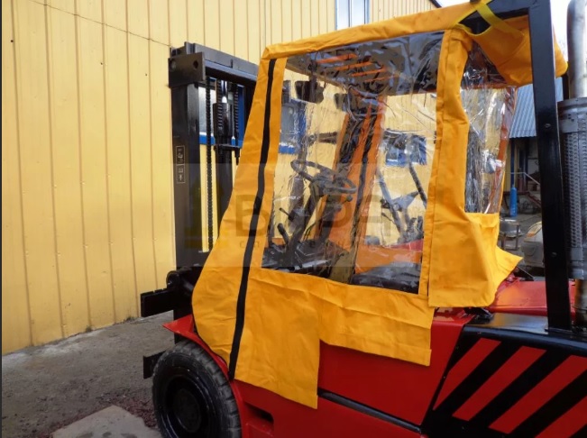 Также если правильно подобрать и установить кабину для вилочного погрузчика, можно создать очень комфортные условия для труда, благодаря которому обеспечивается высокая производительность. Вилочные погрузчики с мягкими кабинами являются намного более безопасными во время обработки грузов, будет защищено здоровье оператора в том случае, если брус упадёт. На данный момент есть несколько основных типов кабин для погрузчиков, которые отличаются по материалу, применяемому при изготовлении. Мы занимаемся изготовлением мягких кабин, предназначенных для погрузчиков. Такие мягкие кабины изготавливаются из поливинилхлорида. Эти изделия отличаются своим удобством эксплуатации, так как для их демонтажа нужно малое количество времени, намного меньше, чем для снятия металлических или поликарбонатных конструкций.
