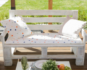 Выбирая наполнение подушек, отталкиваются от самых современных тенденций. Декор для мебели без жесткой основы набивают качественным холлофайбером и упругими поролоновыми шариками. В сравнении с прежним поролоном, это инновационный материал, срок годности его в 2-3 раза дольше, чем у старых аналогов. Расставьте акценты декора по сторонам лавочки, скамейки или любого бескаркасного диванчика!