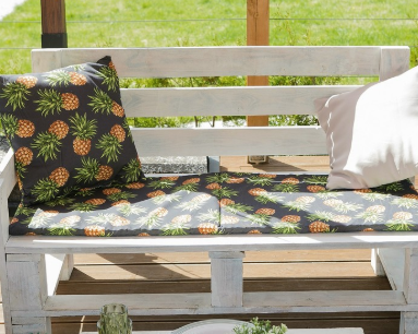 - У нас можно заказать небольшие подушки на скамейки или более крупные по размерам: 400 x 200 x 1000 см. Подушки на лавки из поролона могут быть с завязками или без них.