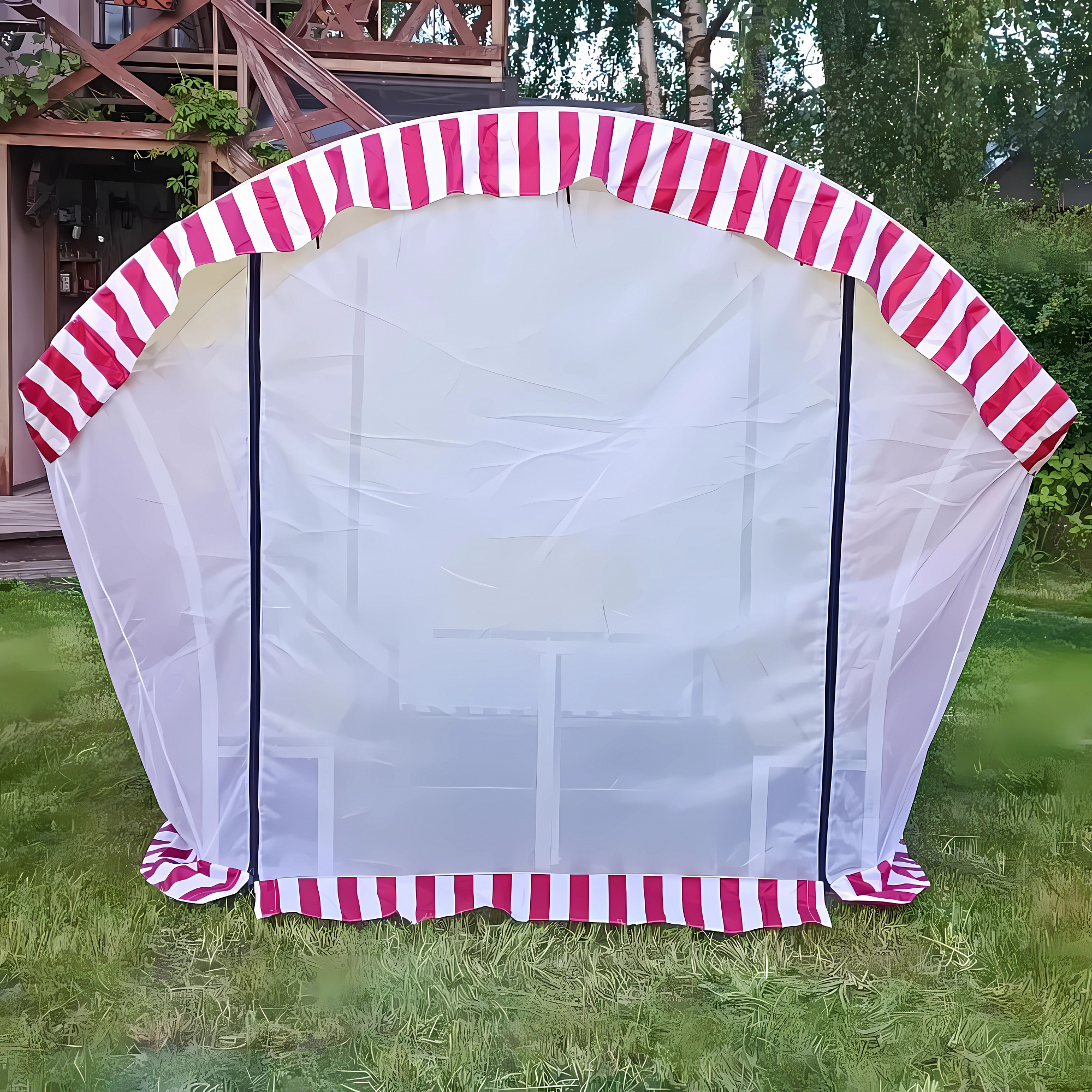 Для улучшения вентиляции и предотвращения образования конденсата некоторые чехлы оснащены специальными вентиляционными отверстиями или сетчатыми вставками. Это позволяет поддерживать оптимальный микроклимат внутри беседки и предотвращает накопление влаги, что особенно важно для сохранения мебели и других предметов, находящихся под чехлом.