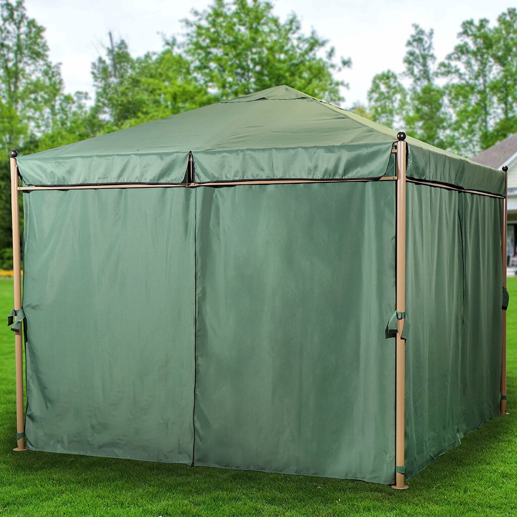 У нас вы можете приобрести комплект, предназначенный для четырёхугольного шатра Green Days. Комплект изготовлен в России, выполнен он в серо-зеленом цвете, подойдёт он для шатра, имеющего размеры 3 х 3 х 2,7 м. В комплекте находится крыша, противомоскитная сетка, а также стенки. Крыша изготовлена из полиэстера плотностью 180 г, а двойные боковые стенки из полиэстера плотностью 140 г и плотностью 34 г.