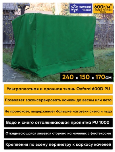 Краткое описание «Зимний чехол для садовых качелей 240х150х170см ультраплотный, ткань оксфорд 600D»