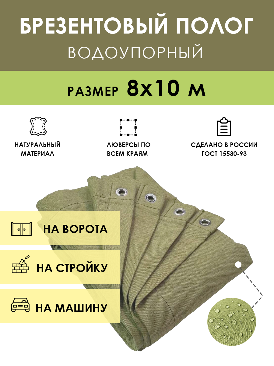 Полог брезентовый водоупорный 8x10 м, с люверсами (стандарт)